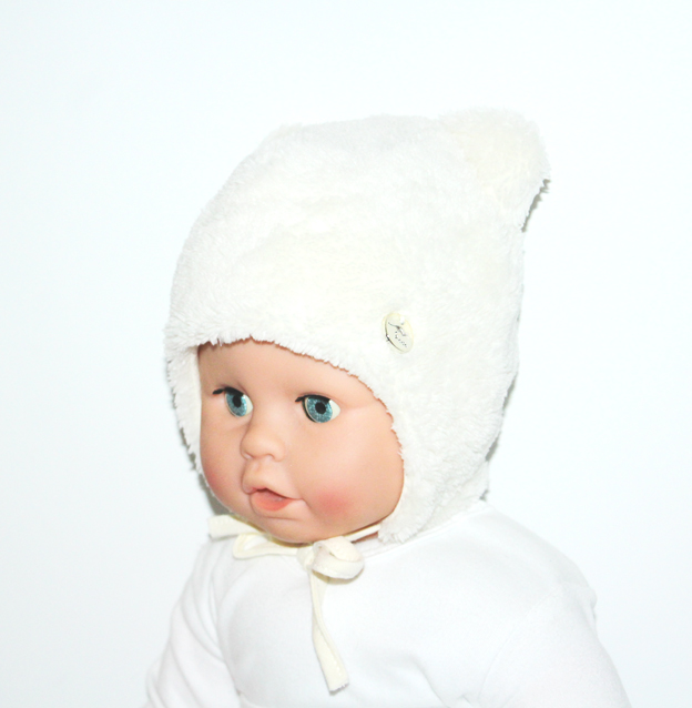 Kojenecká čiapka na zimu s jednoduchým dizajnom, zdobená malými uškami navrchu je ideálnou voľbou na zimu pre deti do pol roka.