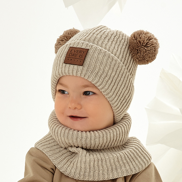 Zimná súprava pozostáva z dvojvrstvovej čiapky s dvomi roztomilými šnúrkovými bombuľkami a hrejivého nákrčníka, roláka, ktoré spoločne poskytujú maximálny komfort a ochranu pred zimou.