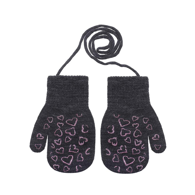 detské jednovrstvové palcové rukavice spojené šnúrkou