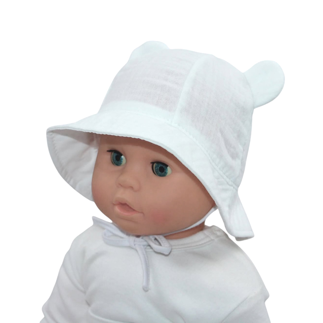 Letný detský klobúčik z jemného mušelínu je ideálnou voľbou pre najmenšie detičky už od troch mesiacov.