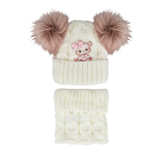 Zimná súprava pozostáva z dvojvrstvovej čiapky s dvomi roztomilými bombuľkami a hrejivého nákrčníka, roláka, ktoré spoločne poskytujú maximálny komfort a ochranu pred zimou.